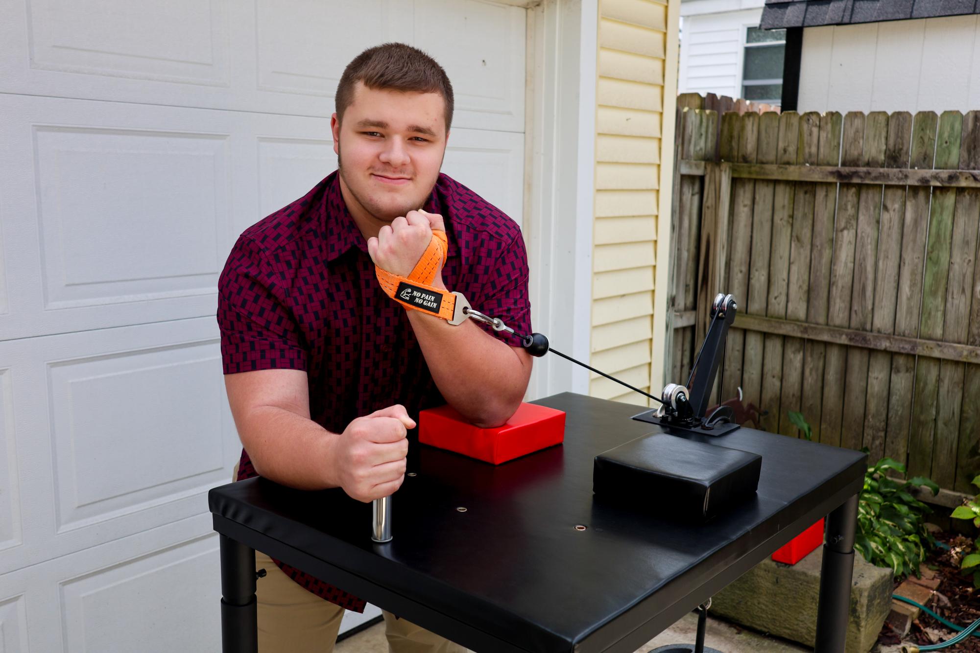 Gavin Zeiner prepares for the upcoming arm wrestling tournament